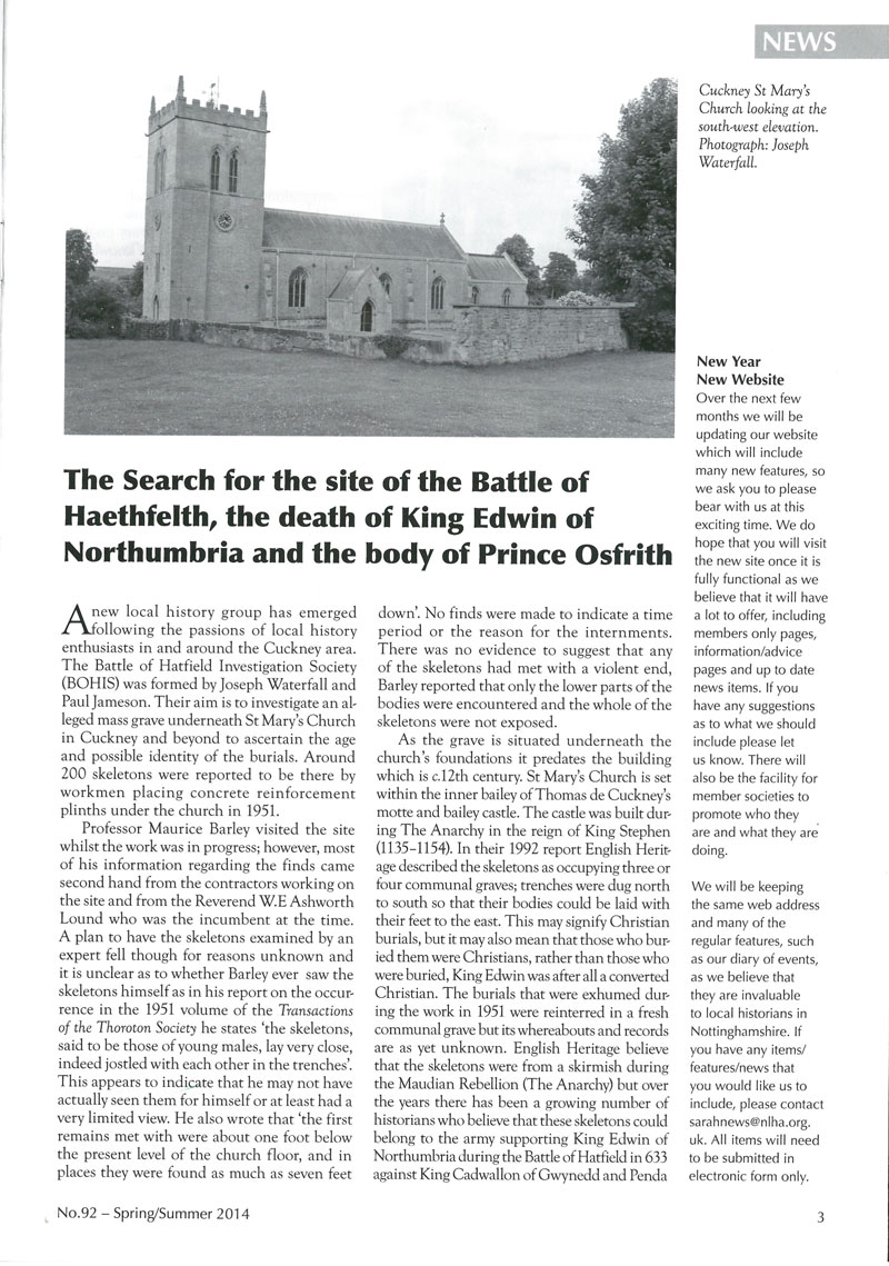 Media Coverage Battlefield V29 Is1 Autumn 2024 – Hatfield extract – Courtesy : Battlefield magazine and the Battlefields Trust
